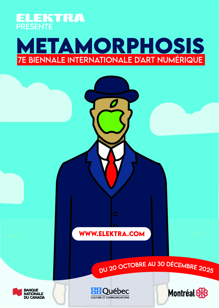 Création de deux affiches pour la Biennale Internationale d’Art Numérique à Montréal. Relecture numérique de deux œuvres iconiques — Le Cri (Munch) et Le Fils de l’homme (Magritte) — transformées en illustrations vectorielles modernes.